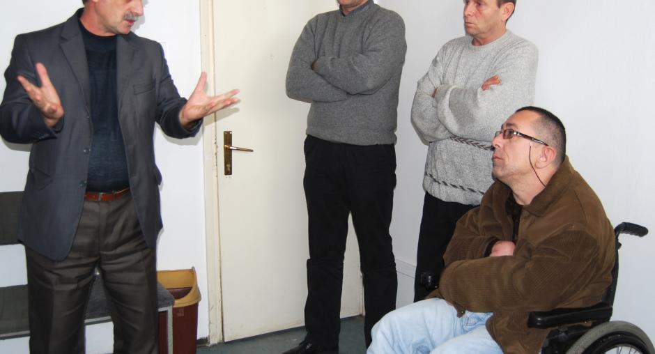 Behxhet Binaku (m), manager of the Handikos office in Prishtine/Pristina, speaks about the importance of the new Handikos office within the municipal building of Fushe Kosove/Kosovo Polje, 4 February 2010. (OSCE/Hasan Sopa)