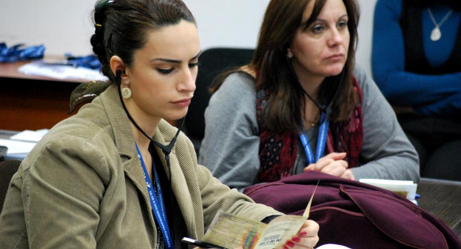 Remzije Brovina, a judge at the municipal court in Prishtine/Pristina, talks about women's equal right to property and inheritance during a workshop organized by the OSCE Mission in Kosovo, 30 October 2009. (OSCE/Hasan Sopa)