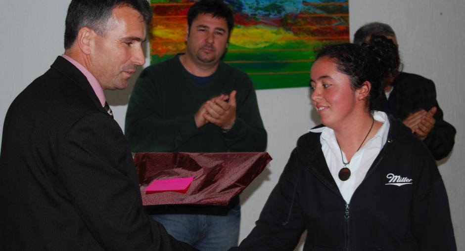 Refki Gegaj, Director of the Department of Special Planning and Environment, Suharekë/Suva Reka municipality, awards an art prize to a student of Jeta Re secondary school, as part of OSCE Mission's activities to mark Earth Day, 22 April 2009. (OSCE/Hasan Sopa)