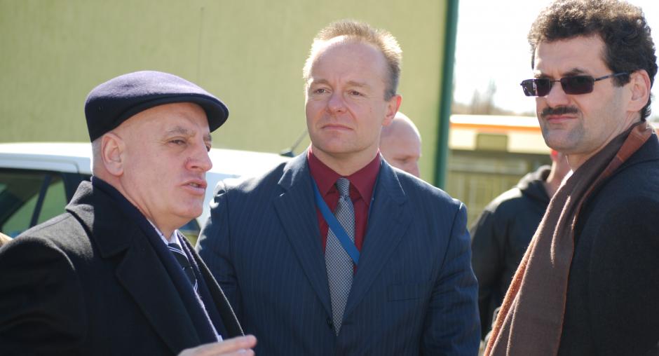Ambassador Werner Almhofer (r), Head of the OSCE Mission in Kosovo, Heinz Schneider, Chief of the Mission's Public Safety Development Section (c), talk to Sheremet Ahmeti, Director of the Kosovo Police Service, Vushtrri/Vucitrn, 9 March 2009. (OSCE/Hasan Sopa)