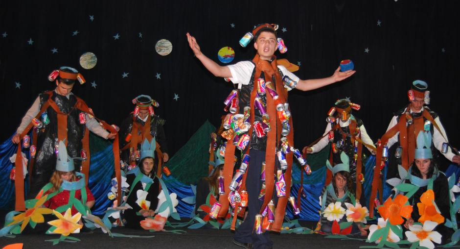 Students of Jeta Re secondary school in Suharekë/Suva Reka during a performance at the city's cultural house, part of the OSCE Mission in Kosovo's activities to mark Earth Day, Suharekë/Suva Reka, 22 April 2009. (OSCE/Hasan Sopa)