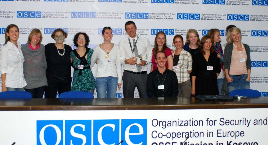 A family photo of students from various universities in Germany with Senior Public Affairs Officer Nikola Gaon (6th left), during a visit to the headquarters of the OSCE Mission in Kosovo, Prishtine/Pristina, 2 October 2009. (OSCE/Hasan Sopa)