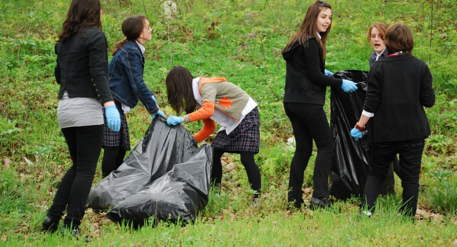 Students from the Jeta Re secondary school clean up the city park as part of the Earth Day celebration organized by the OSCE Mission in Kosovo, Suharekë/Suva Reka, 22 April 2009. (OSCE/Hasan Sopa)