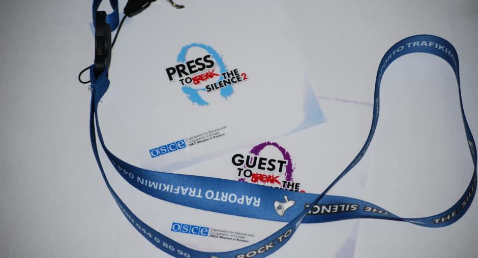 A lanyard and ID cards with the slogan 'Rock to break the silence' in Albanian and Serbian are part of the OSCE-sponsored anti-trafficking campaign that started on 26 November and will last until 10 December 2009, the International Day of Human Rights. (OSCE/Hasan Sopa)