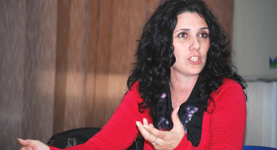 Ganimete Kitmiri, advisor at the Kosovo Ministry of Justice, talks to the media on the launch of the Mission's anti-trafficking campaign in Prizren, 4 December 2009. (OSCE/Hasan Sopa)