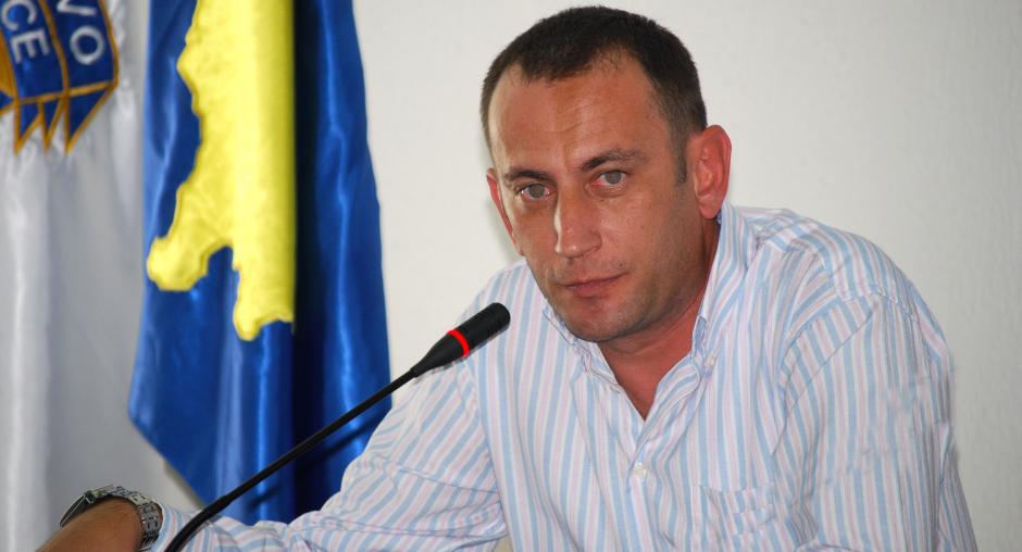 Fatmir Xhelili, Kosovo's Deputy Minister of the Interior, at a handover ceremony for equipment donated by the German Embassy to the Security and Public Safety Agency in Kosovo, Vushtrri/Vucitrn, 20 July 2009. (OSCE/Hasan Sopa)