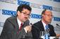 Harold Dampier, Chief of the Mission's legal system monitoring section, and Makifete Saliuka, civil judge at the municipal court of Prishtine/Pristina, at an OSCE press conference on domestic violence, Prishtine/Pristina, 25 November 2009. (OSCE/Hasan Sopa)