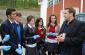 Salih Elshani (r), from the Suharekë/Suva Reka municipality, talks to students at Jeta Re secondary school involved on cleaning activities on the Earth Day celebration organized by the OSCE Mission in Kosovo, Suharekë/Suva Reka, 22 April 2009. (OSCE/Hasan Sopa)