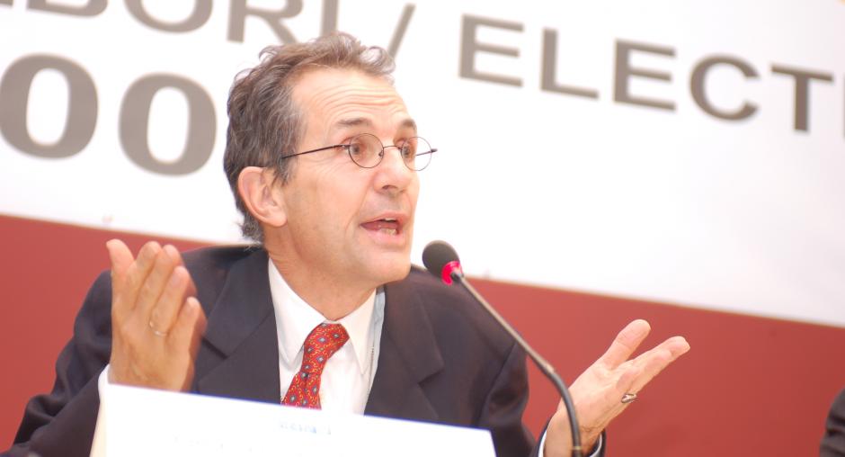 Ambassador Tim Guldimann, OSCE Mission Head, speaks to the media during the second press conference on election day, 17 November 2007. (OSCE/Hasan Sopa)