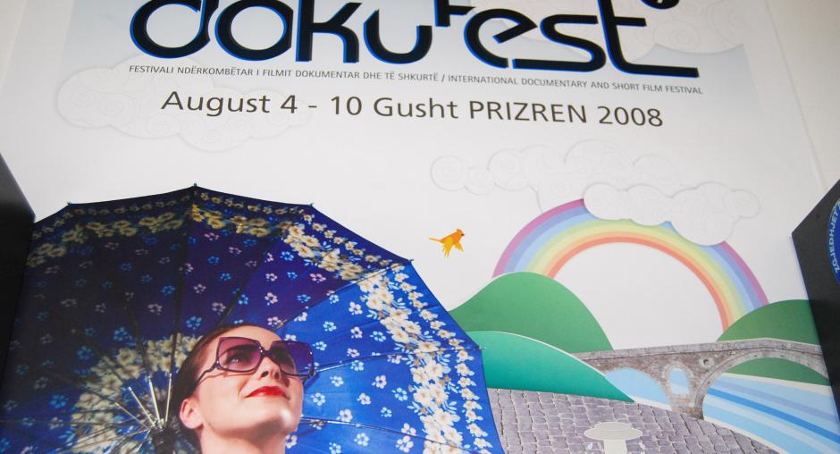 Dokufest posters are plastered along the streets of Prizren to mark the international documentary and short film festival taking place from 4-10 August 2008. (OSCE/Hasan Sopa)