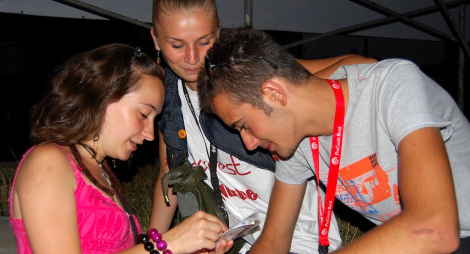 Young film fans inspect the movie schedule for Dokufest, Kosovo's largest documentary and short film festival, taking place in Prizren from 4-10 August 2008. (OSCE/Hasan Sopa)