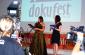 Awards ceremony moderators at Dokufest, Kosovo's biggest international documentary and short film festival, announce the winners at the improvised outdoor cinema 'Lumbardhi' in Prizren, where nearly 140 films competed for 10 awards, 10 August 2008. (OSCE/Hasan Sopa)