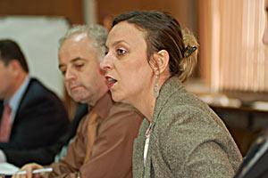 Vjollca Krasniqi from the Kosovo-based Centre for Research and Gender Policy, makes a point during a weekly meeting of the Transition Working Group on Elections, Prishtina, 6 February 2007.