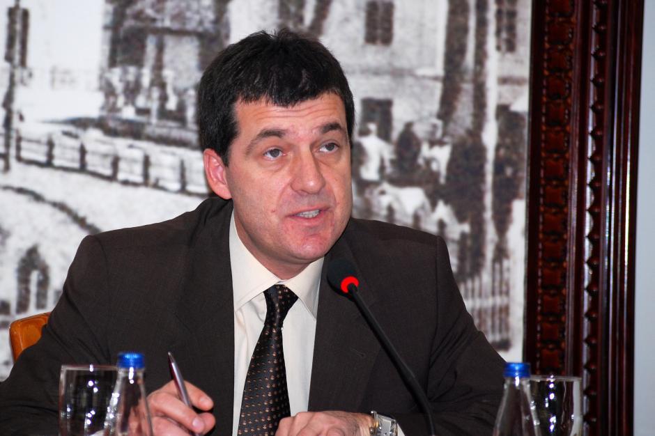 Petrit Popova, from Kosovo's Ministry of Economy and Finance, speaks about an OSCE report assessing the progress of former pilot municipal units in their first year as full-fledged municipalities, Mamusa, Junik and Hani Elezit, Pristina, 19 March 2010.