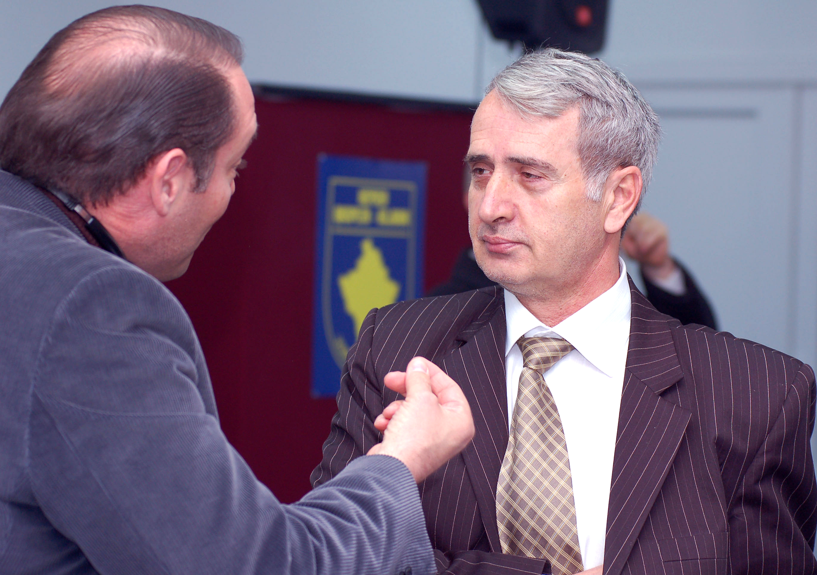 Haxhi Ramaj (r), Chief of Kosovo's Business Registration Office, and Lance Johnston, Director of private security firm Balkan International, at an OSCE-sponsored roundtable on oversight of the private security industry, Vushtrri/Vucitrn, 27 March 2007.