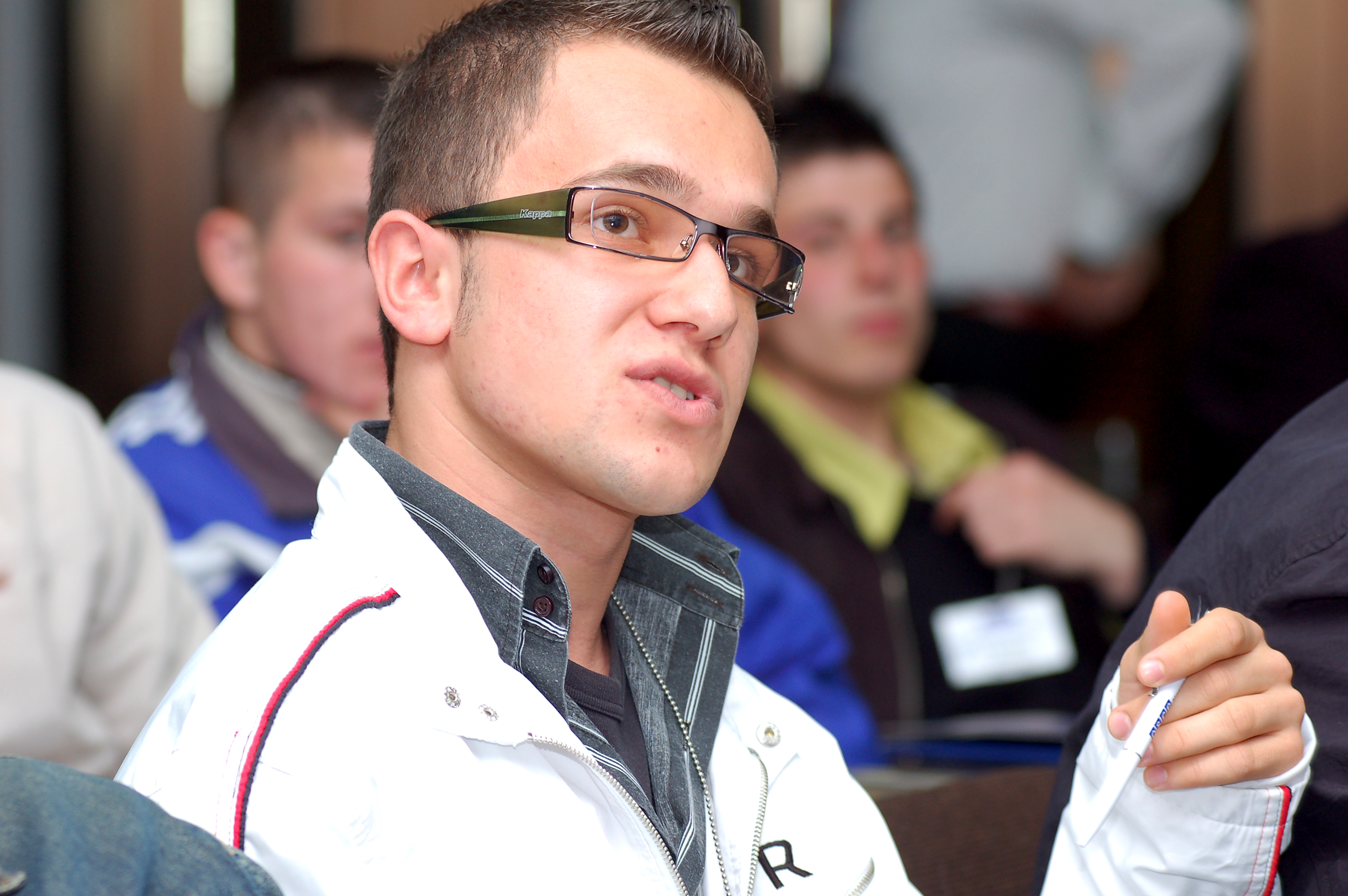 A student from a secondary school in Prizren asks about the mandate of the OSCE Mission in Kosovo during a presentation at the Mission's Headquarters, Prishtine/Pristina, 6 April 2007.