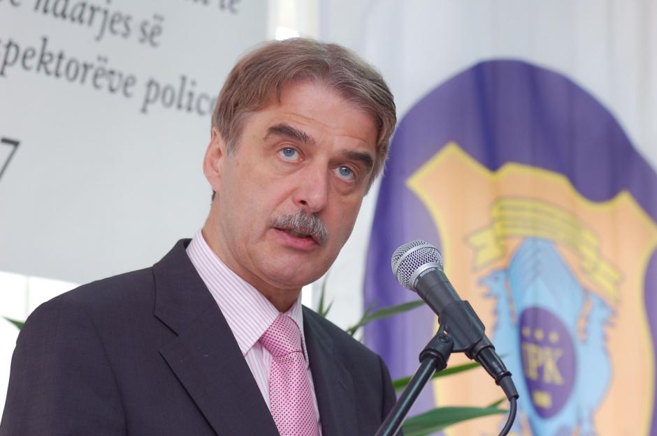 Ambassador Werner Wnendt, Head of the OSCE Mission in Kosovo, speaks at a ceremony for the first graduates of the Mission-supported Police Inspectorate of Kosovo, Prishtine/Pristina, 8 June 2007.