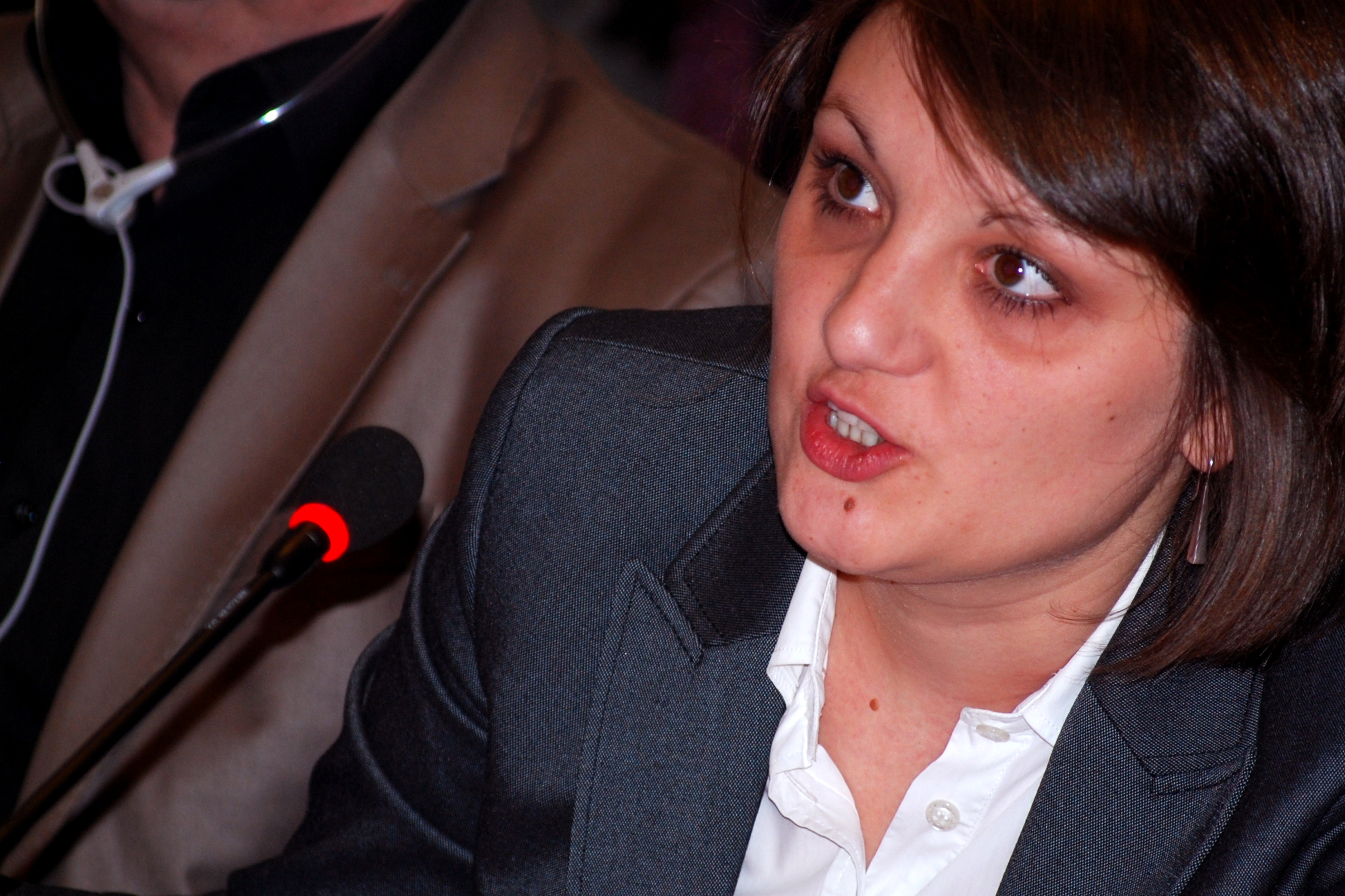 Lucile Sengler, Human Rights Officer on Anti-Terrorism Issues at OSCE/ODIHR, moderates a Mission-organized workshop on counter-terrorism and the protection of human rights, Prishtine/Pristina, 14 February 2011.