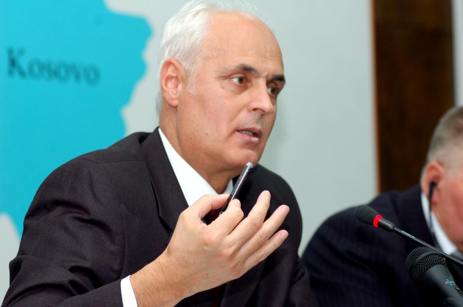 Kosovo's Justice Minister Jonuz Salihaj comments on an OSCE report on the referral mechanism for trafficking victims in Kosovo, Prishtine/Pristina, 31 October 2007.
