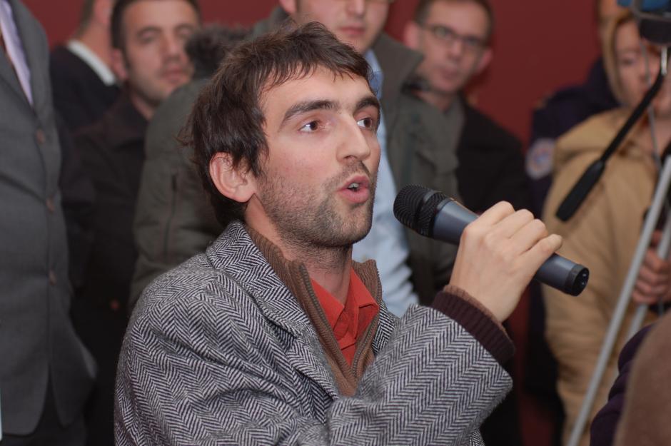 A journalist poses a question at the second press conference organized by the Kosovo Central Election Commission on election day, 17 November 2007.