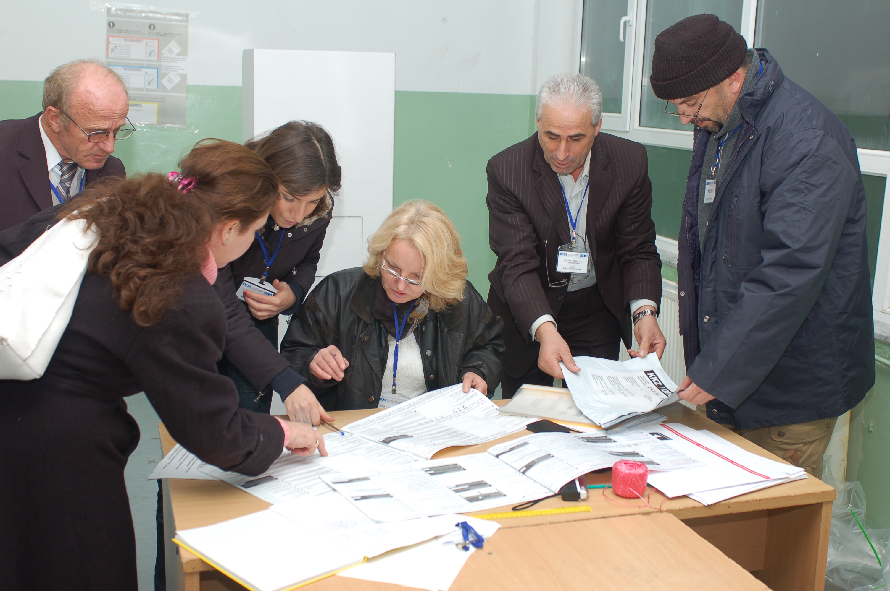 Members of the polling station at "Jeta e Re" Secondary School in Suhareke/Suva Reka Municipality prepare the register book before beginning the vote count during Kosovo's elections, 17 November 2007.