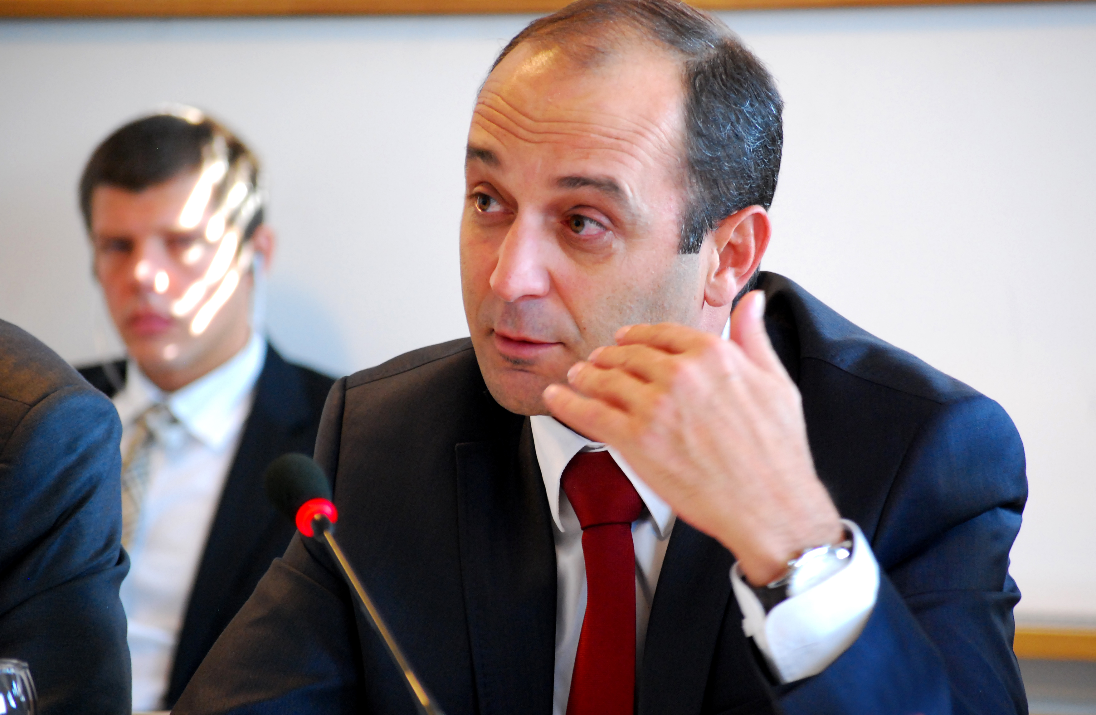 Environment and Spatial Planning Minister Dardan Gashi explains the Ministry’s involvement in environmental issues at a conference on environmental crime, organized by the OSCE Mission in Kosovo, Prishtinë/Priština, 5 October 2011.