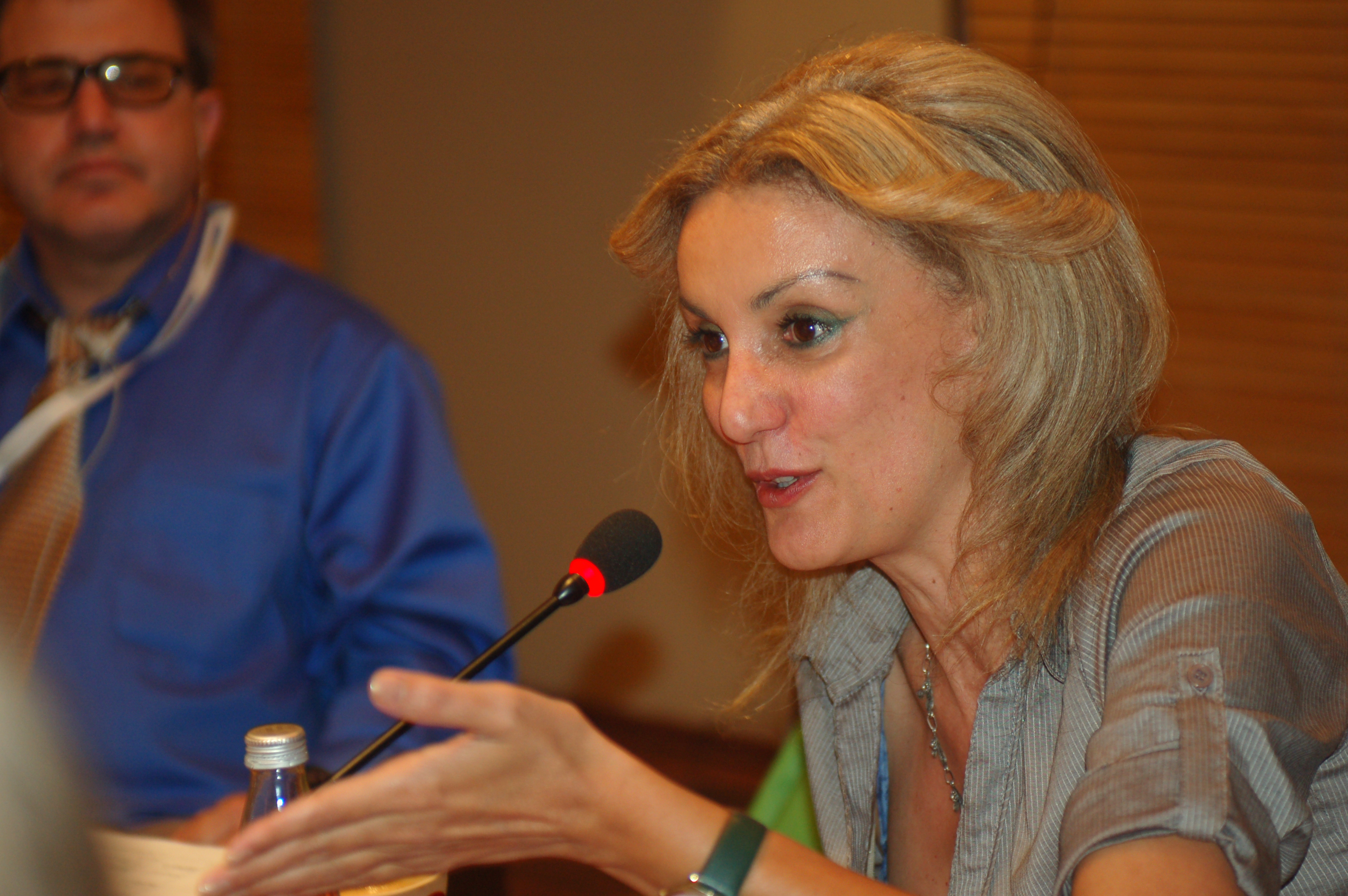 Emine Berisha, from IREX, a local NGO, gives her view at an OSCE-organized regional conference on investigative journalism, Prishtinë/Priština, 22 October 2011.