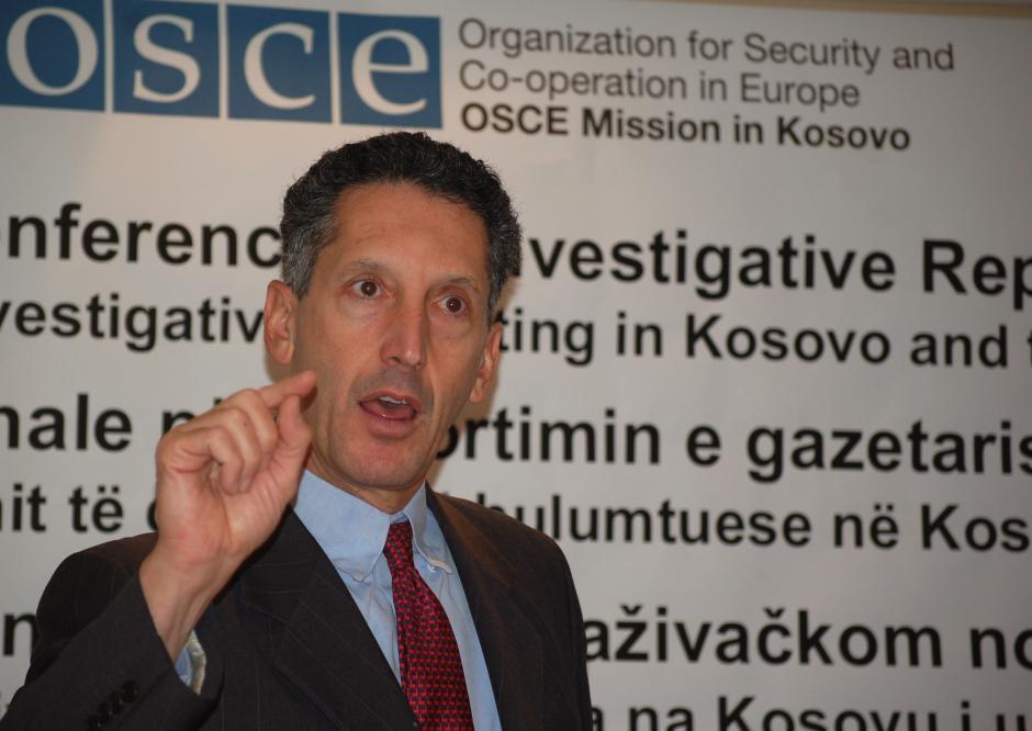 Edward Joseph, Deputy Head of the OSCE Mission in Kosovo, gives his remarks at an OSCE-organized regional conference on investigative journalism, Prishtinë/Priština, 22 October 2011.