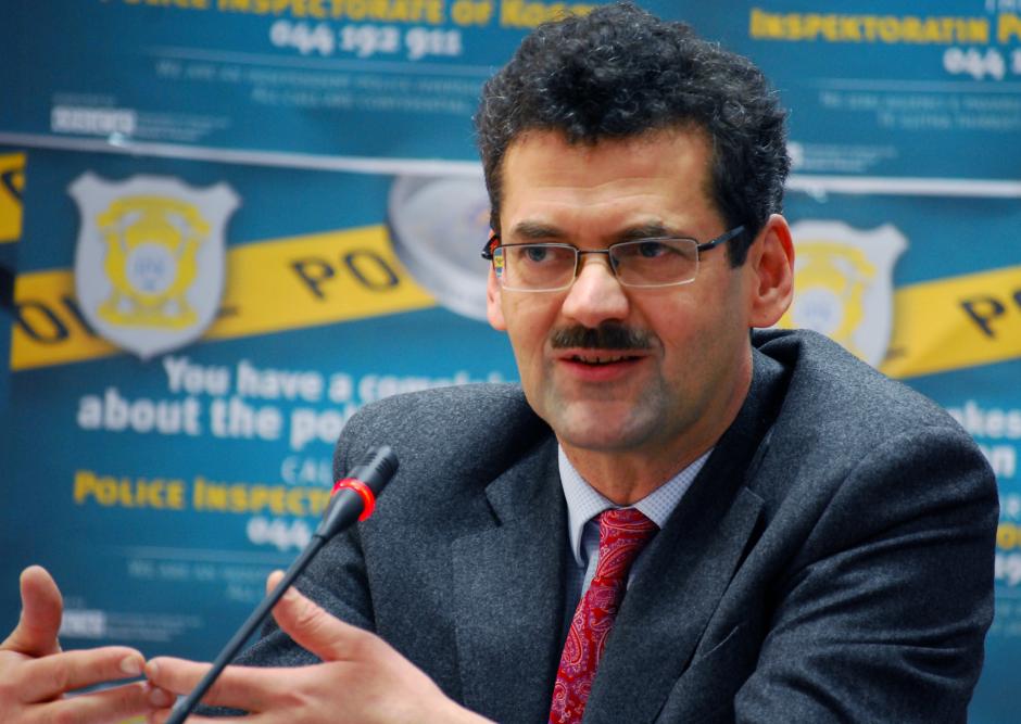 The Head of the OSCE Mission in Kosovo, Ambassador Werner Almhofer speaks at a Mission press conference to launch a two-week public information campaign promoting the role of the Police Inspectorate as an independent police oversight body, Prishtinë/Priština, 12 December 2011.
