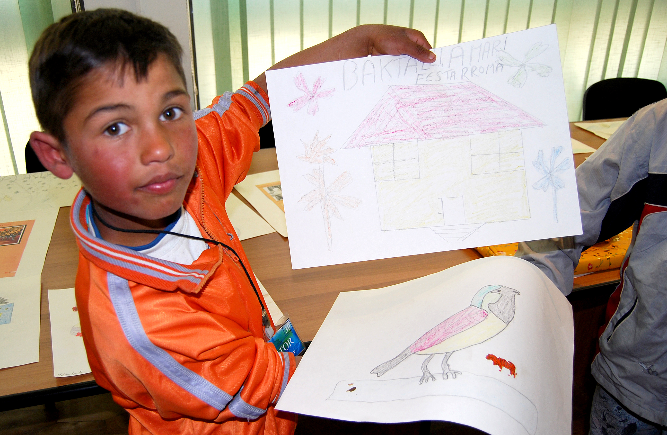 A Roma child from Peje/Pec region shows off a drawing he made to mark International Roma Day, part of an event organized by the OSCE Mission in Kosovo, 7 April 2008.