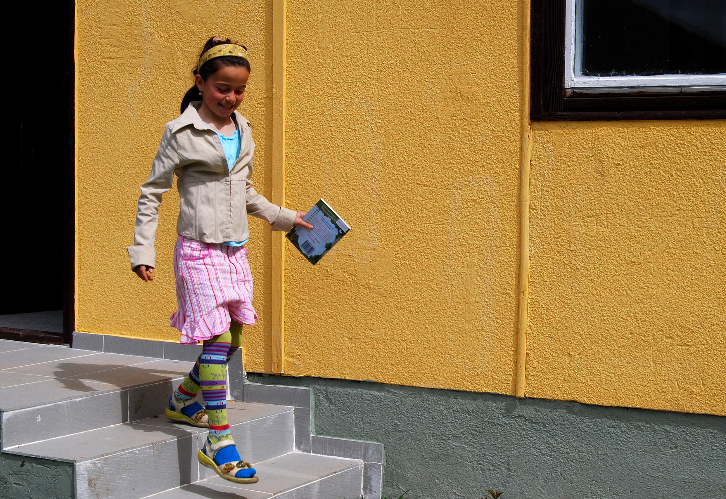 A child from Kadri Bistrica primary school in Bistrice/a village, Leposavic/Leposaviq municipality, on her way home to read a book brought to her school by the Mission in Kosovo-supported Library Bus project, 23 April 2008.