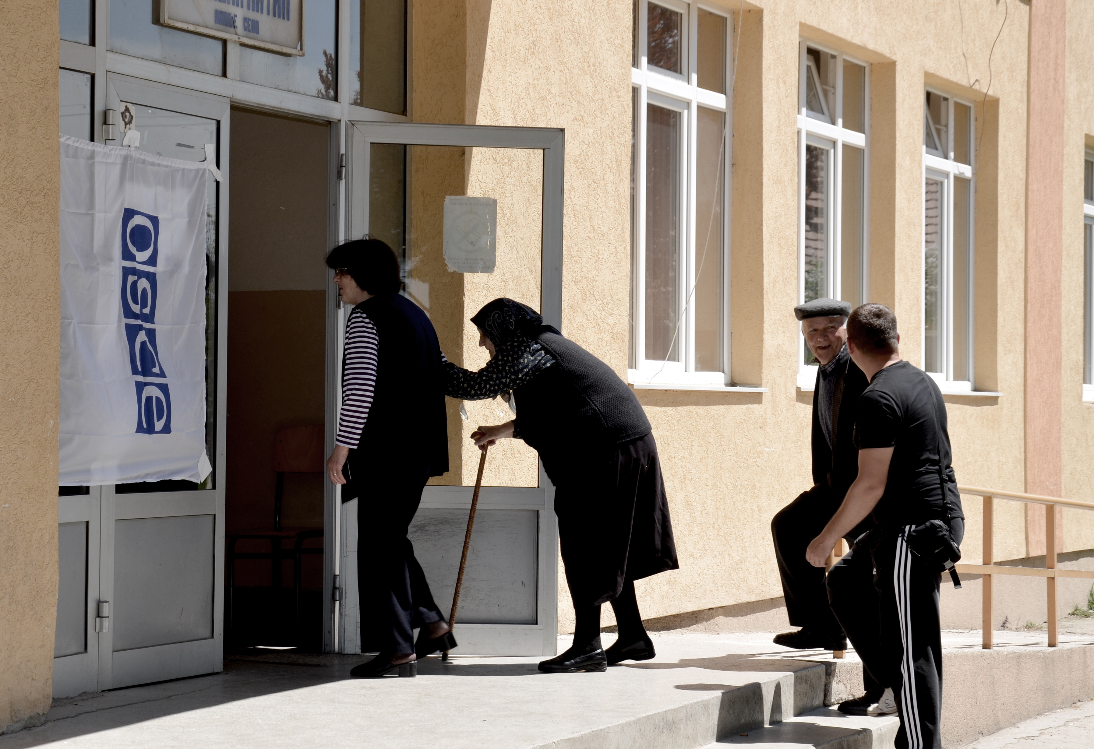 Voters enter an OSCE-run ballot facilitation centre in Laplje Selo/Llapllasellë, 6 May 2012.