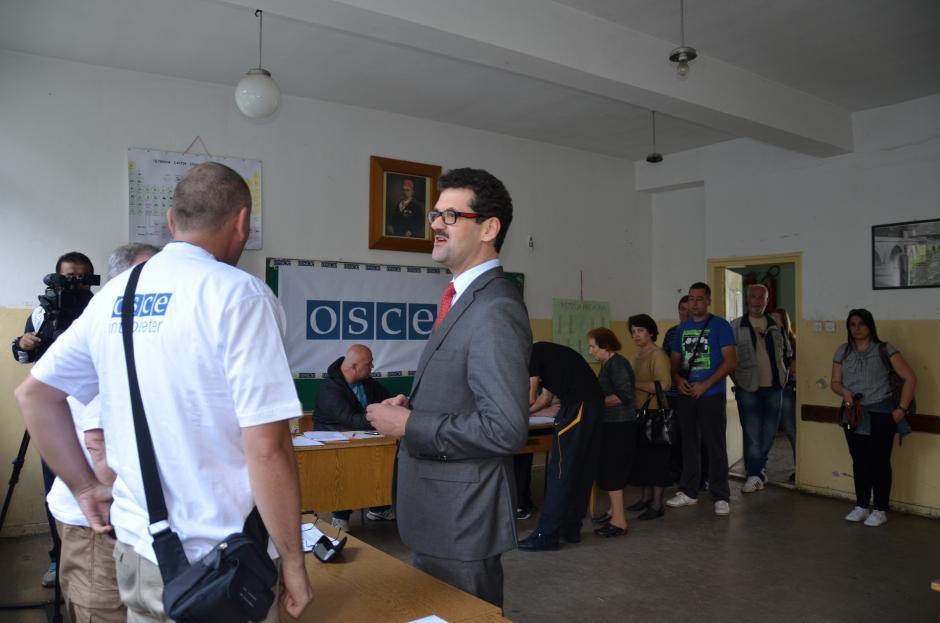 Head of the OSCE Mission in Kosovo, Ambassador Werner Almhofer, visits a polling station in Zvečan/Zveçan, 20 May 2012.