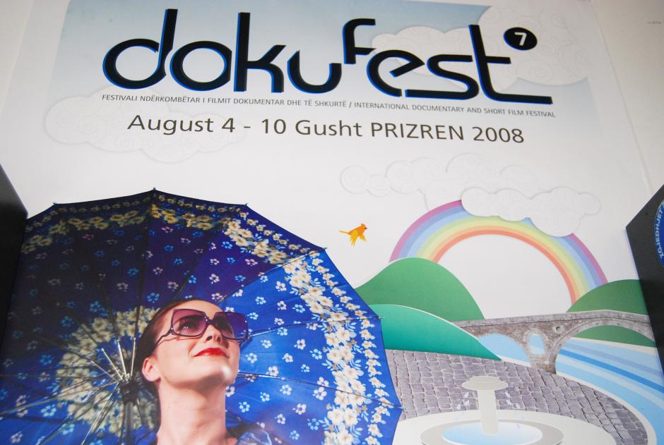 Dokufest posters are plastered along the streets of Prizren to mark the international documentary and short film festival taking place from 4-10 August 2008.