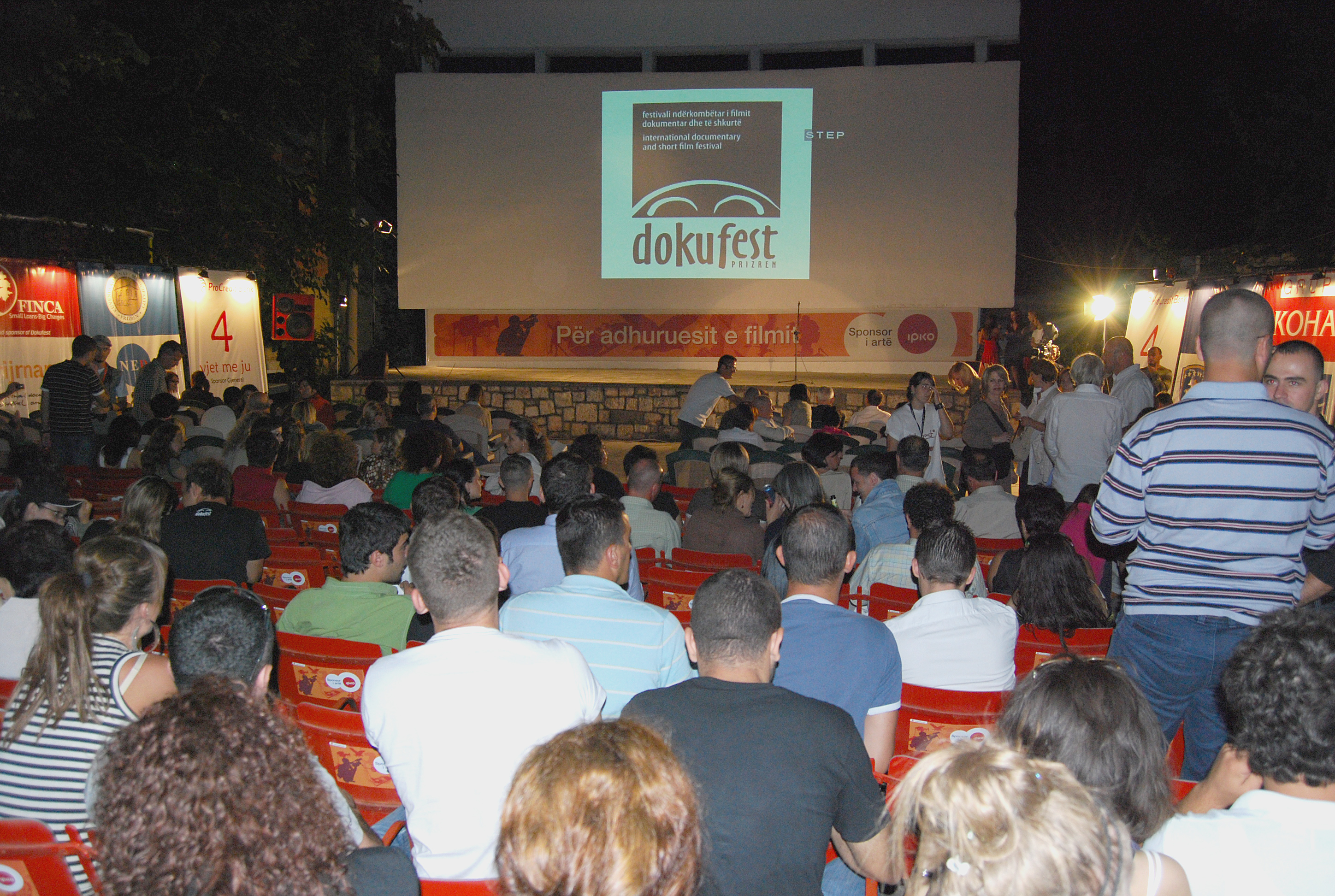 Film fans at the improvised outdoor cinema Lumbardhi (White River) wait for the awards ceremony to begin on the last day of Dokufest, the international documentary and short film festival held in Prizren, Kosovo, from 4 to 10 August 2008.
