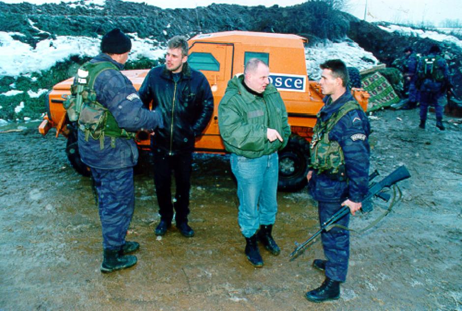 Unarmed OSCE members of the Kosovo Verification Mission take