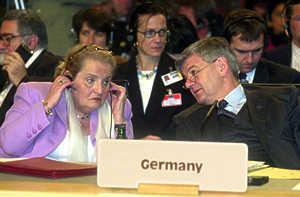 US Secretary of State Madeleine Albright (L) talks to the Foreign