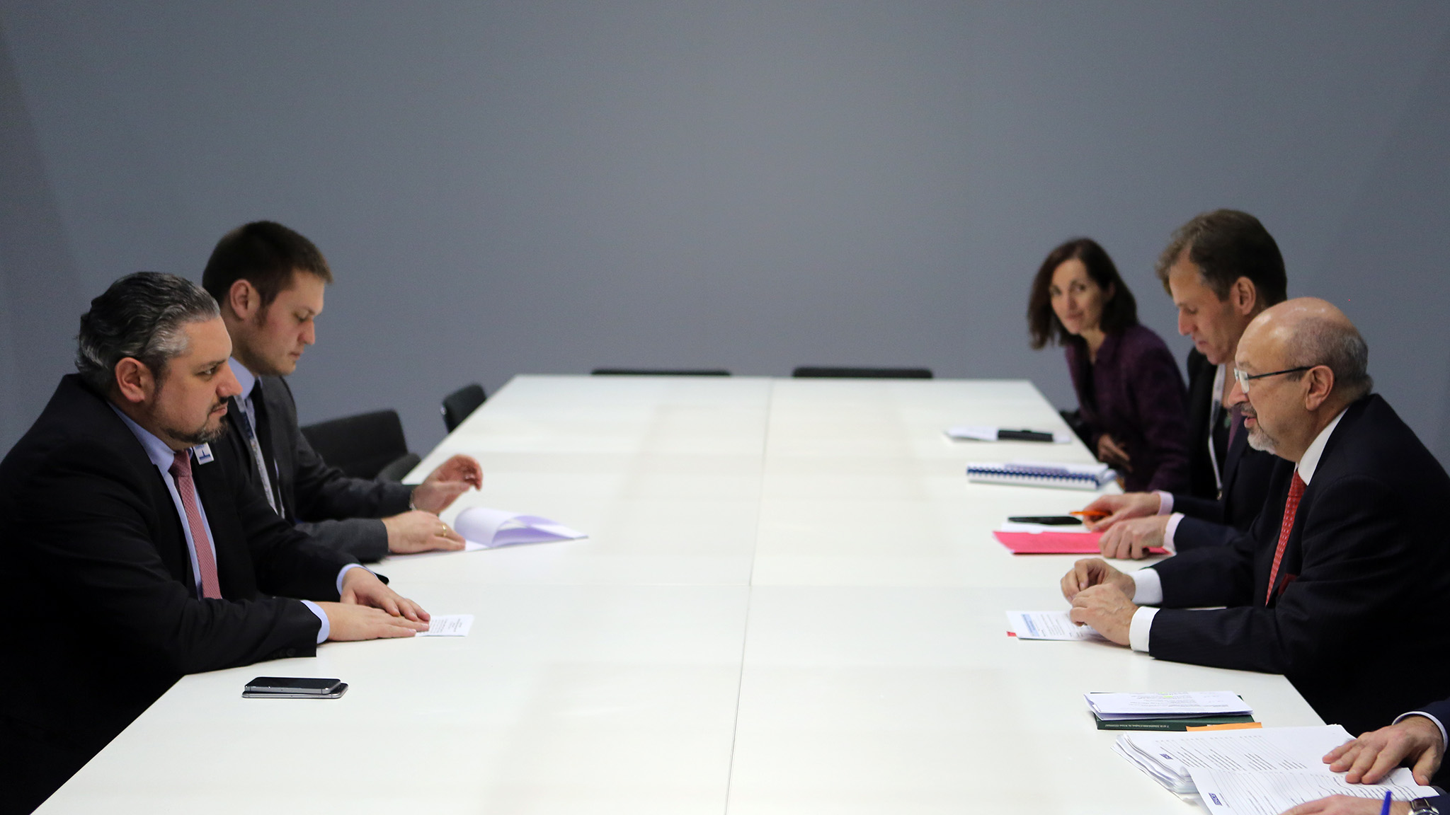 OSCE Secretary General Lamberto Zannier (r) in discussion with the Minister of Foreign Affairs of Moldova Andrei Galbur, on the margins of the 23rd OSCE Ministerial Council, Hamburg, 9 December 2016.