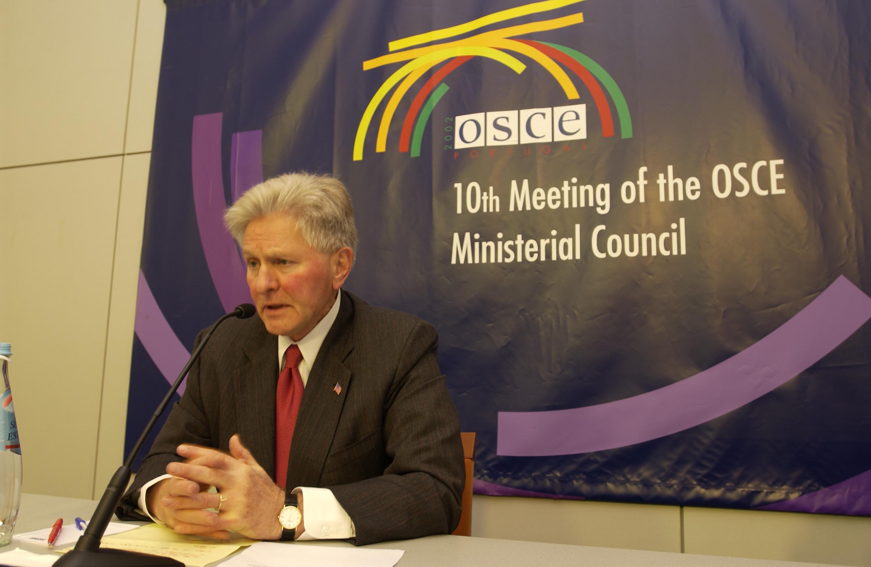 US Ambassador to the OSCE, Stephan Minikes, at a press briefing in Porto, 5 December 2002.