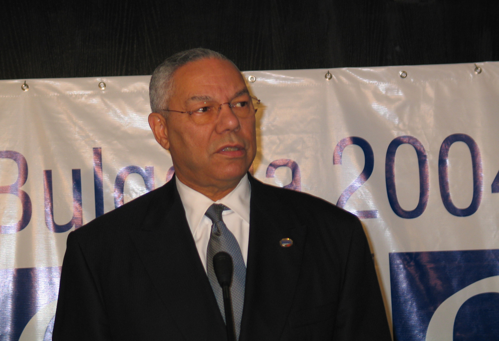 The United States Secretary of State Colin Powell at a press conference during the OSCE Ministerial Council in Sofia, 7 December 2004.