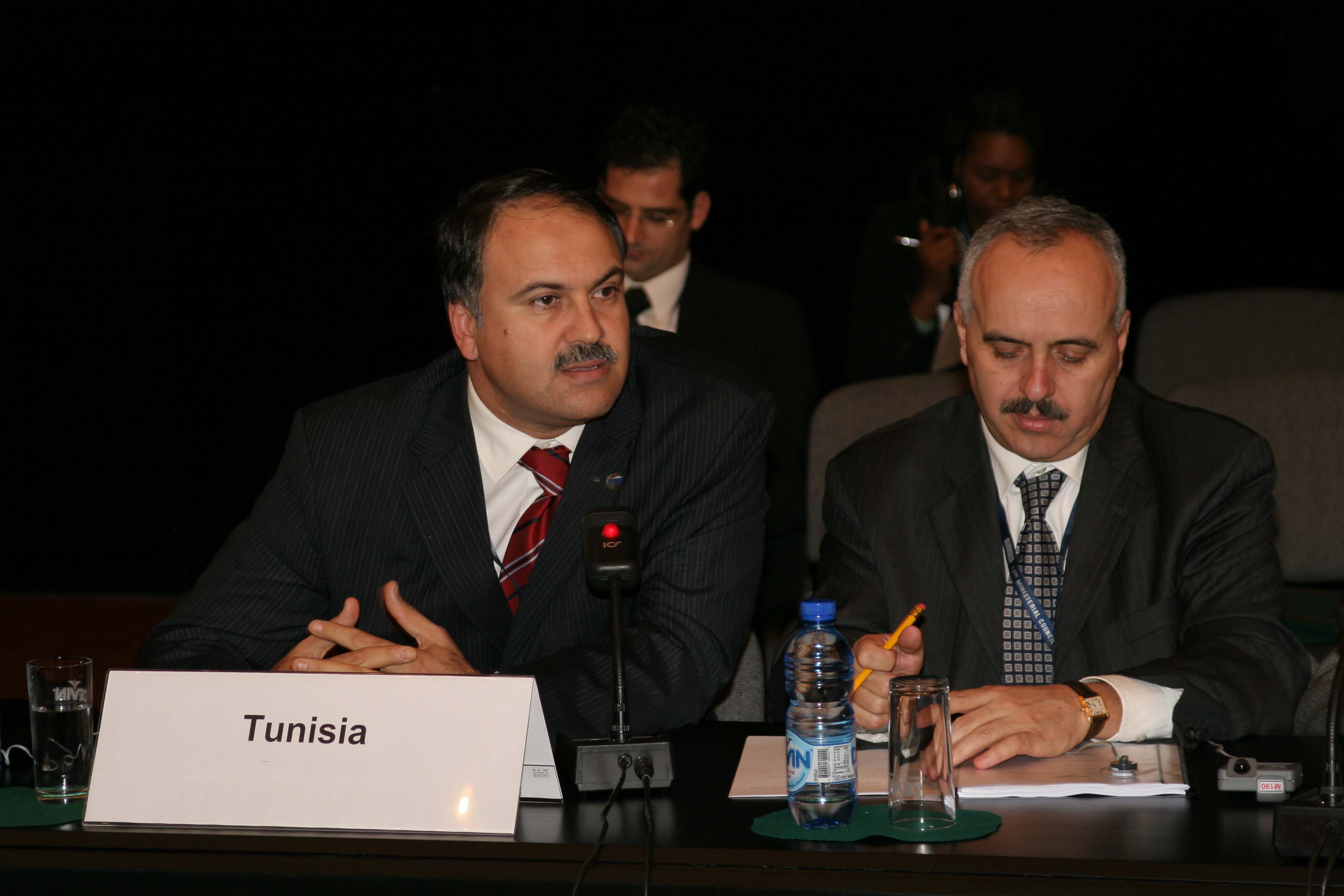 Tunisian European Affairs State Secretary, Hatem Ben Salem (left), at the OSCE Ministerial Council in Sofia, 5 December 2004.