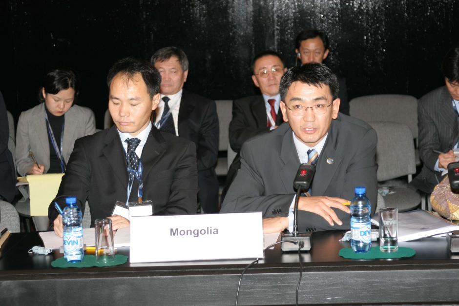 Mongolian Foreign Minister Tsend Munh-Orgil (right), speaking at the OSCE Ministerial Council in Sofia, 5 December 2004