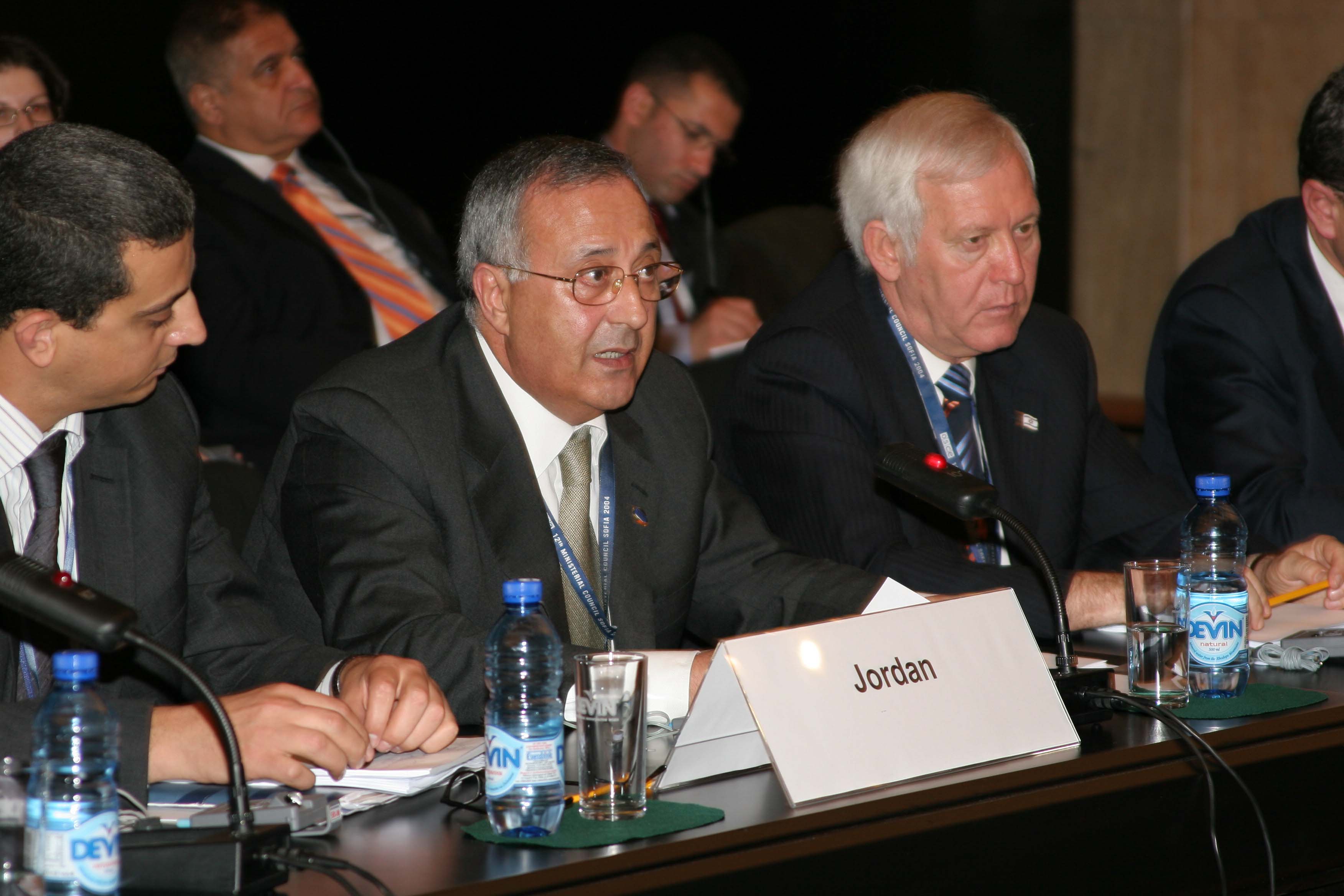 Jordan's Ambassasdor in Vienna, Shehab A. Madi (centre), speaking at the meeting with the Mediterranean Partners for Co-operation at the 12th OSCE Ministerial Council, Sofia, 5 December 2004.