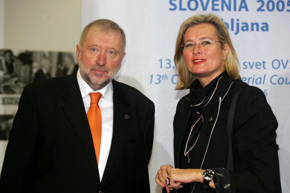 OSCE Chairman-in-Office Dimitrij Rupel with Austrian Foreign Minister Ursula Plassnik at the 13th OSCE Ministerial Council in Ljubljana, 5 December 2005.