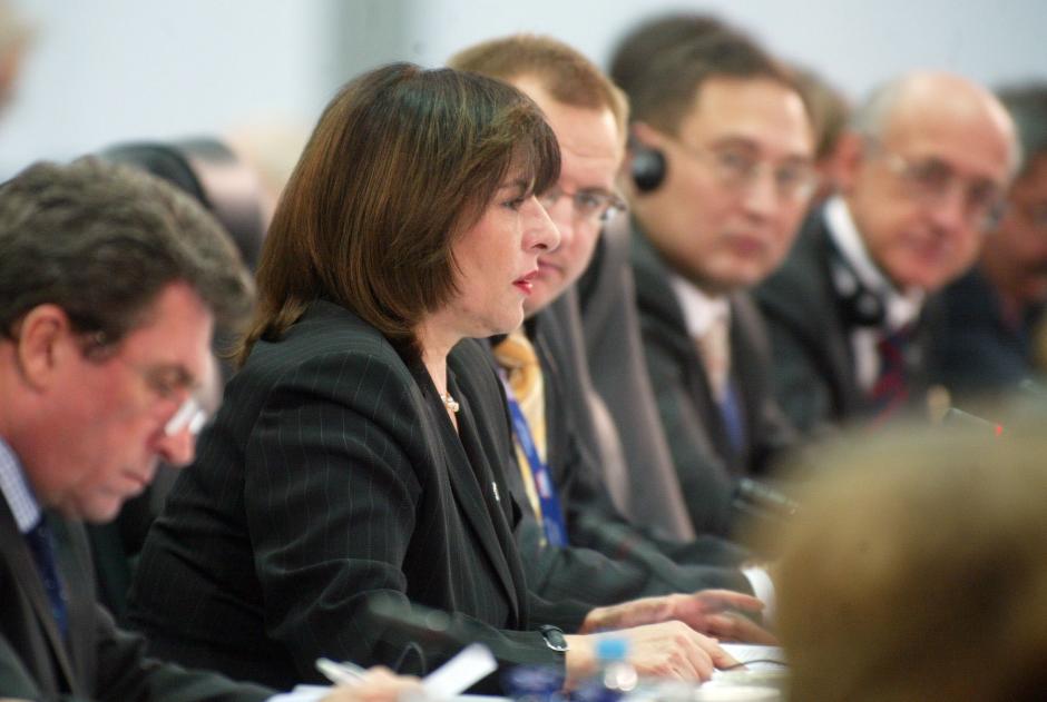 The Foreign Minister of the former Yugoslav Republic of Macedonia, Ilinka Mitreva, speaking at the 13th OSCE Ministerial Council in Ljubljana, 6 December 2005.