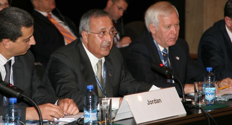 Jordan's Ambassasdor in Vienna, Shehab A. Madi (centre), speaking at the meeting with the Mediterranean Partners for Co-operation at the 12th OSCE Ministerial Council, Sofia, 5 December 2004. (OSCE/Svetoslav Stanchev)