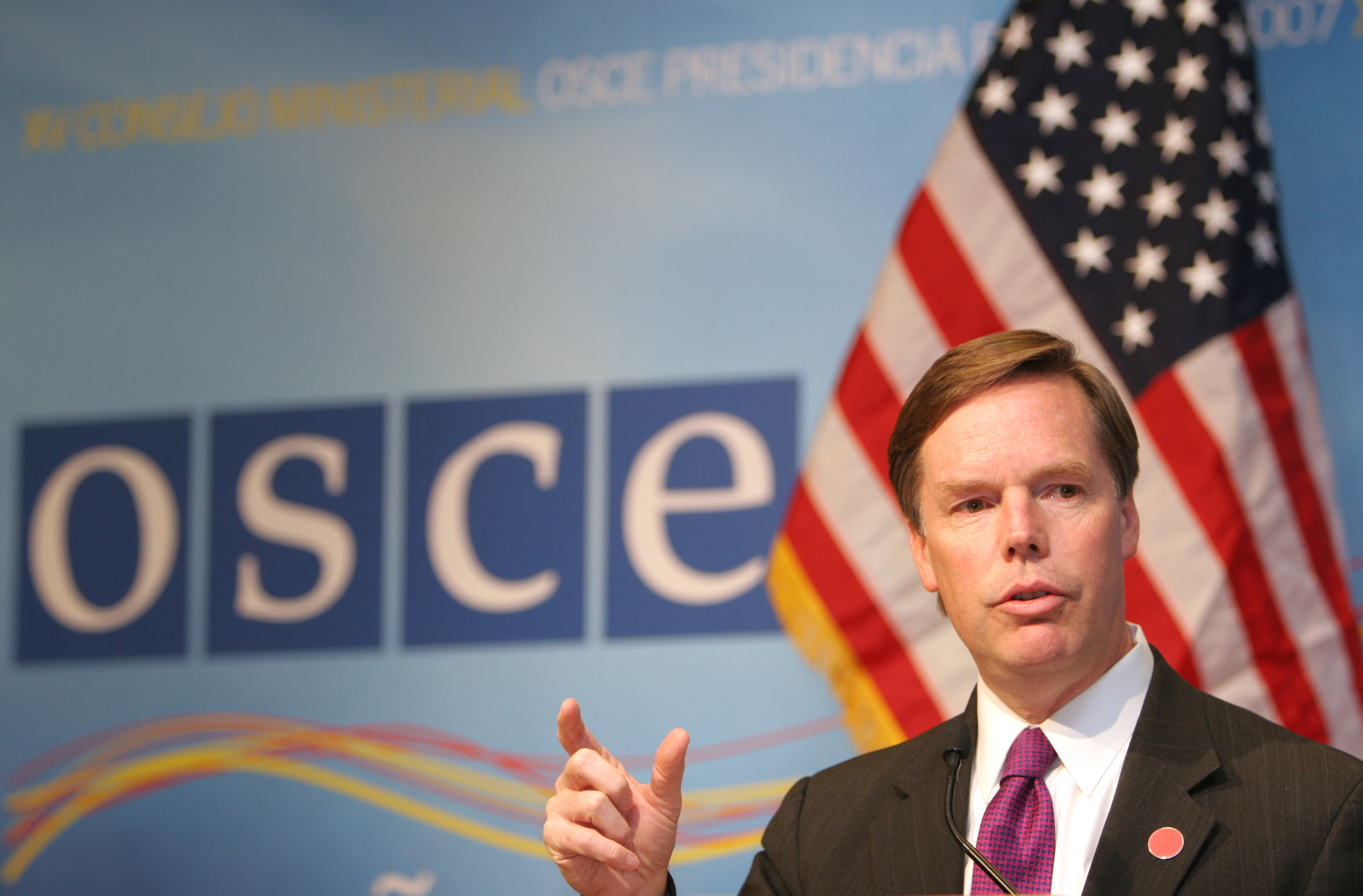 U.S. Under-Secretary of State for Political Affairs Nicholas Burns speaks at a news briefing at the 15th OSCE Ministerial Council in Madrid, 28 November 2007.