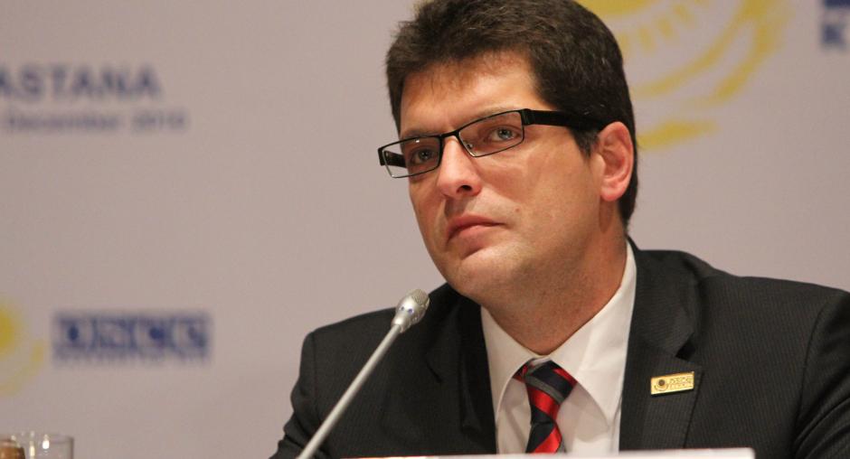Janez Lenarcic, Director of the OSCE Office for Democratic Institutions and Human Rights, at a media briefing during the OSCE Summit in Astana, December 2010. (OSCE/Susanna Lööf)