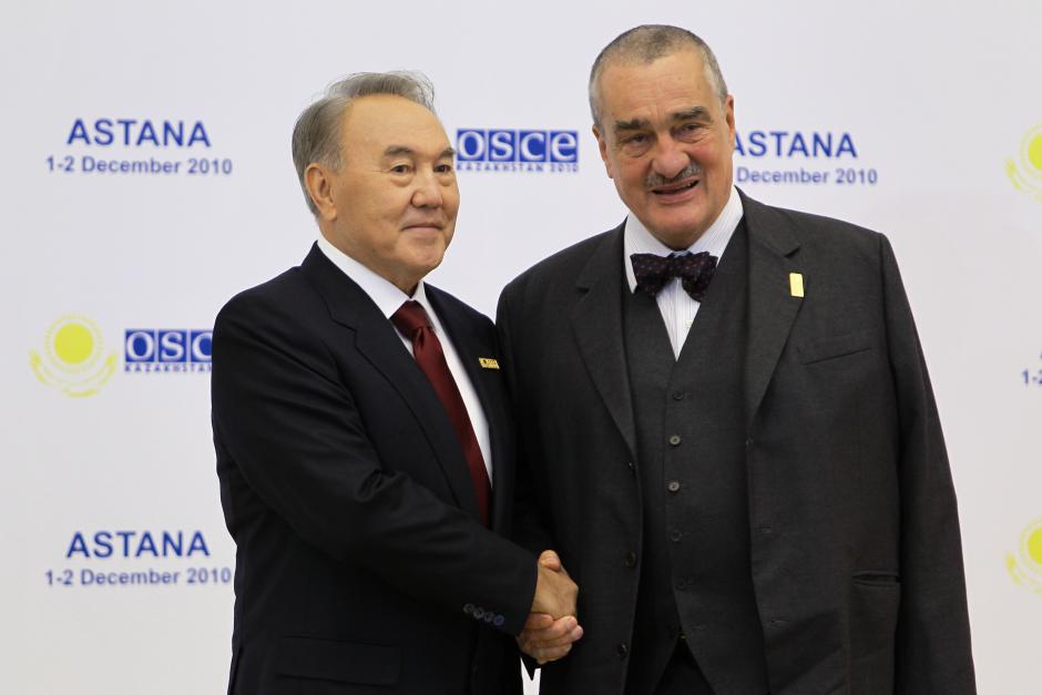 Karel Schwarzenberg, Vice-Premier and Foreign Minister of the Czech Republic, is greeted by Kazakhstan’s President Nursultan Nazarbayev at the opening of the OSCE Summit in Astana, 1 December 2010.