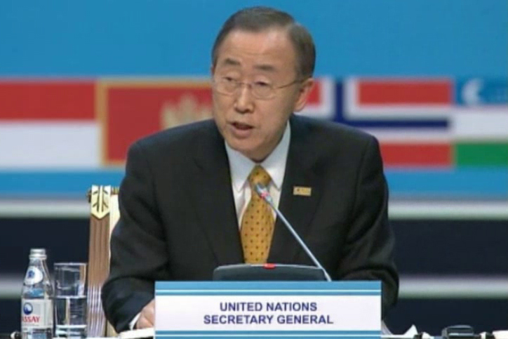 Still from a video on the address by Ban Ki-moon, United Nations Secretary-General, at the OSCE Summit in Astana, 1 December 2010.